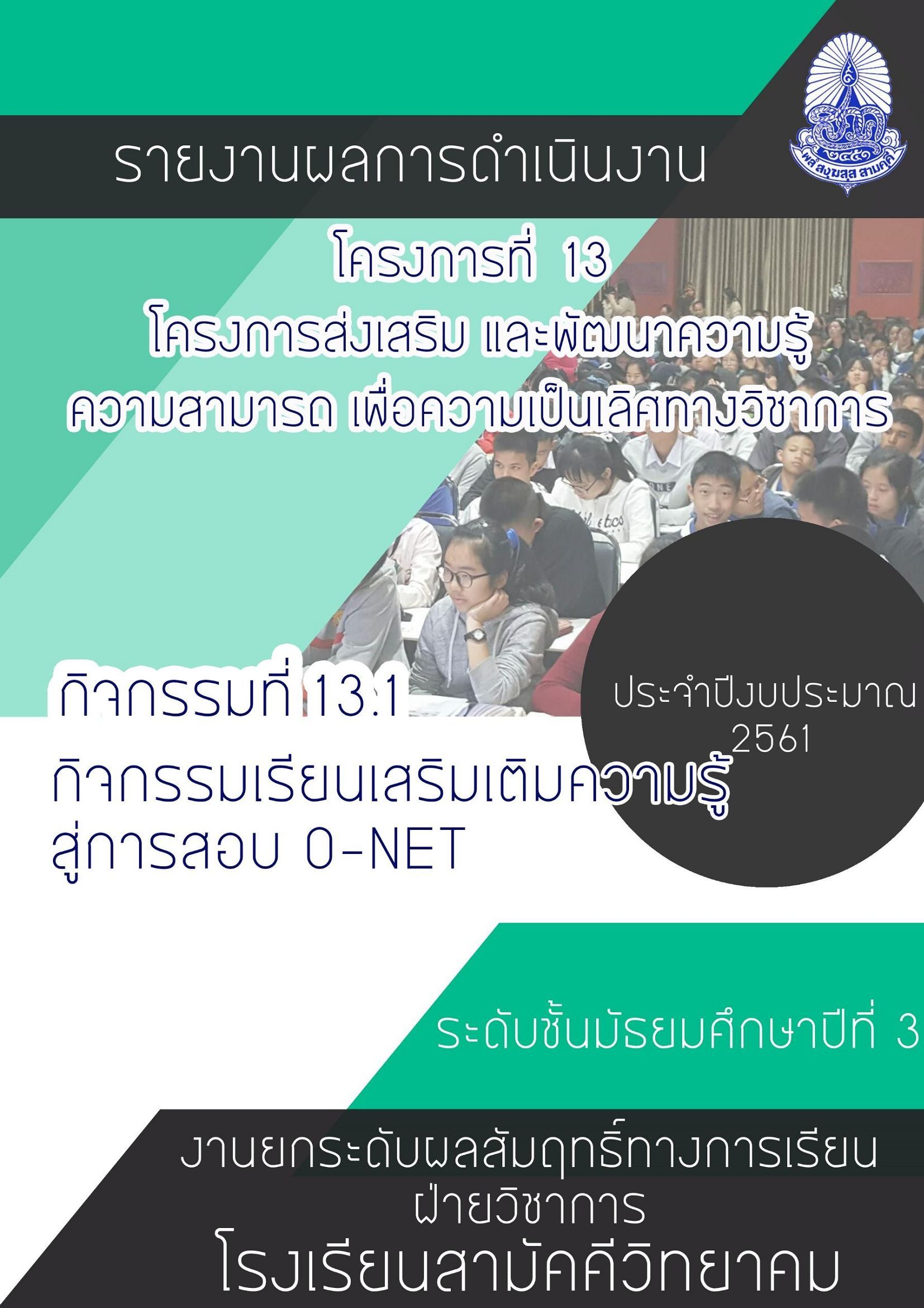 รายงานโครงการ กิจกรรมเรียนเสริมเติมความรู้สู่การสอบ O-NET