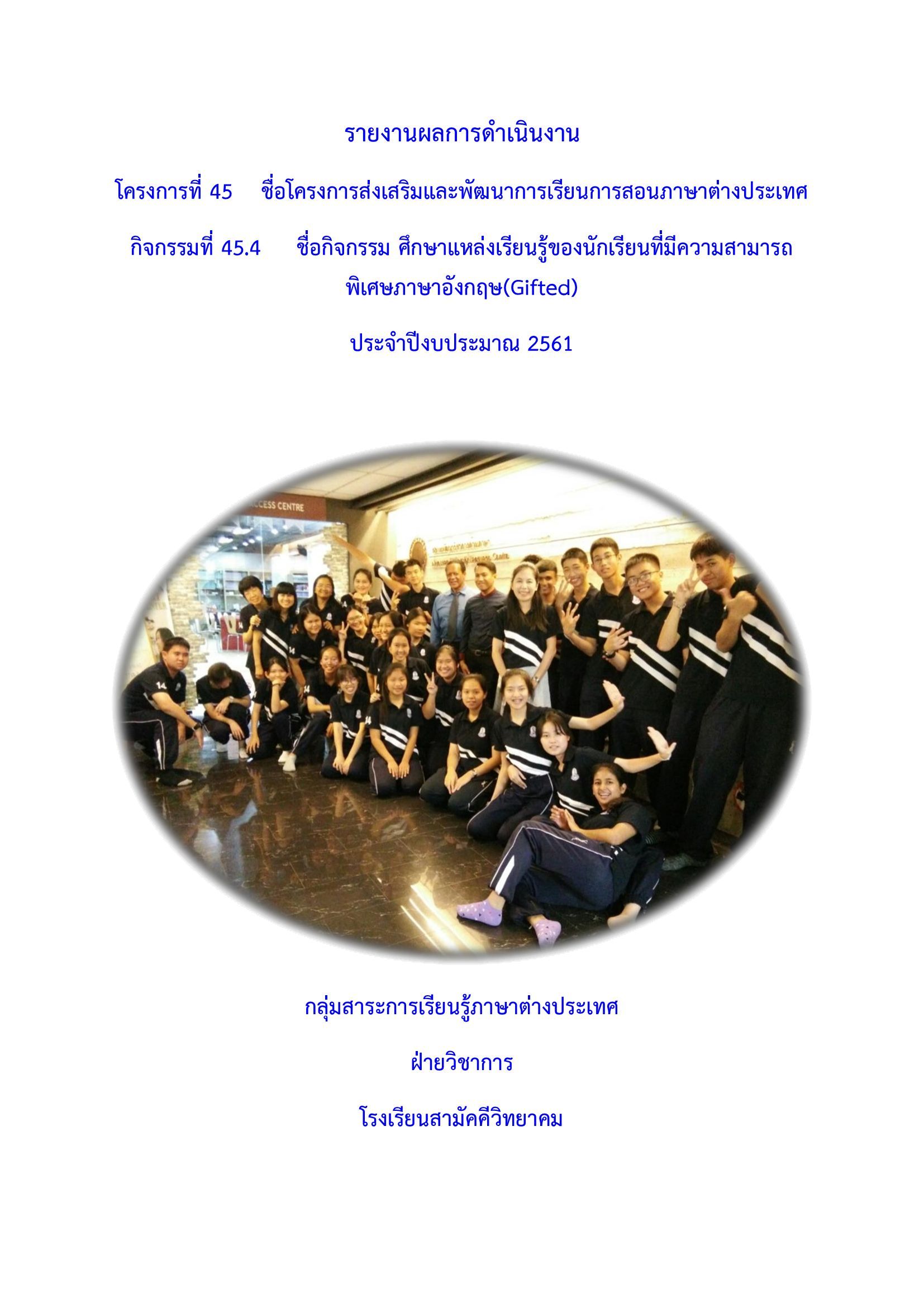 รายงานโครงการ กิจกรรมศึกษาแหล่งเรียนรู้ของนักเรียนที่มีความสามารถพิเศษภาษาอังกฤษ(Gifted)ประจำปีงบประมาณ2561