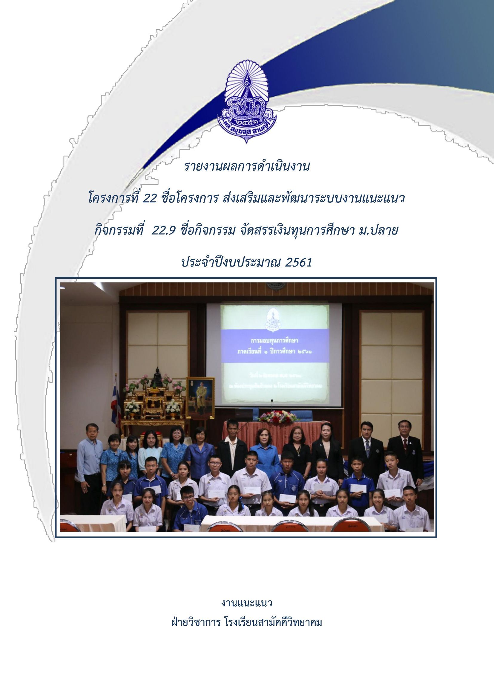 รายงานโครงการ กิจกรรมจัดทุนการศึกษา ม.ปลาย ประจำปีงบประมาณ2561