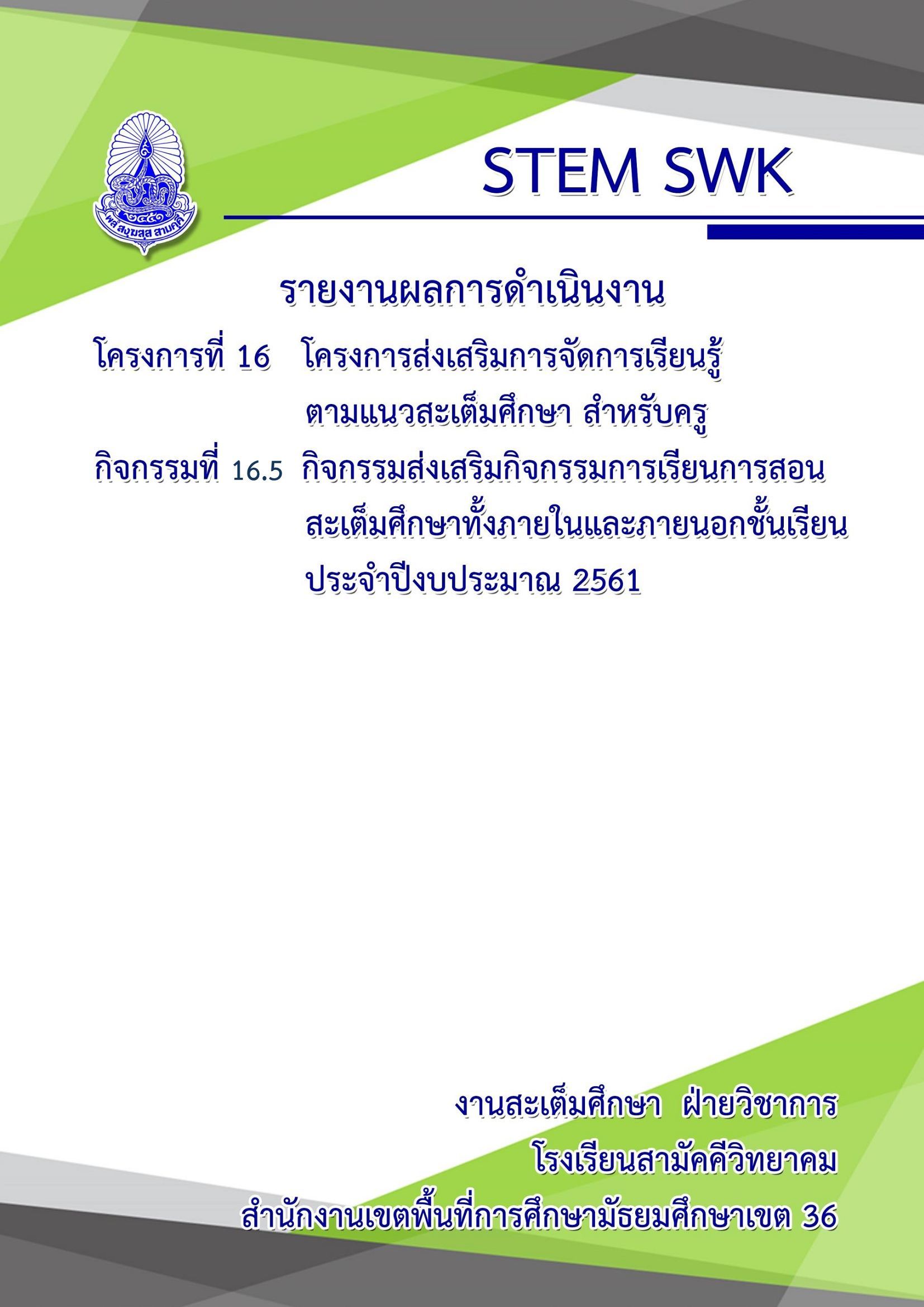 รายงานโครงการ กิจกรรมส่งเสริมการเรียนการสอนเกี่ยวกับสะเต็มศึกษาทั้งภายในและภายนอกชั้นเรียน ประจำปีงบประมาณ2561