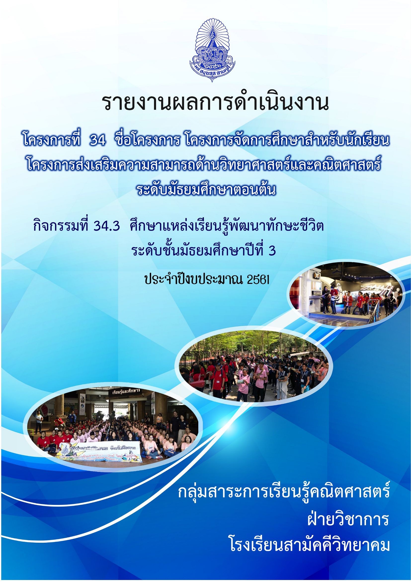 รายงานโครงการ กิจกรรมศึกษาแหล่งเรียนรู้พัฒนาชีวิต ระดับมัธยมศึกษาปีที่3 ประจำปีงบประมมาณ2561