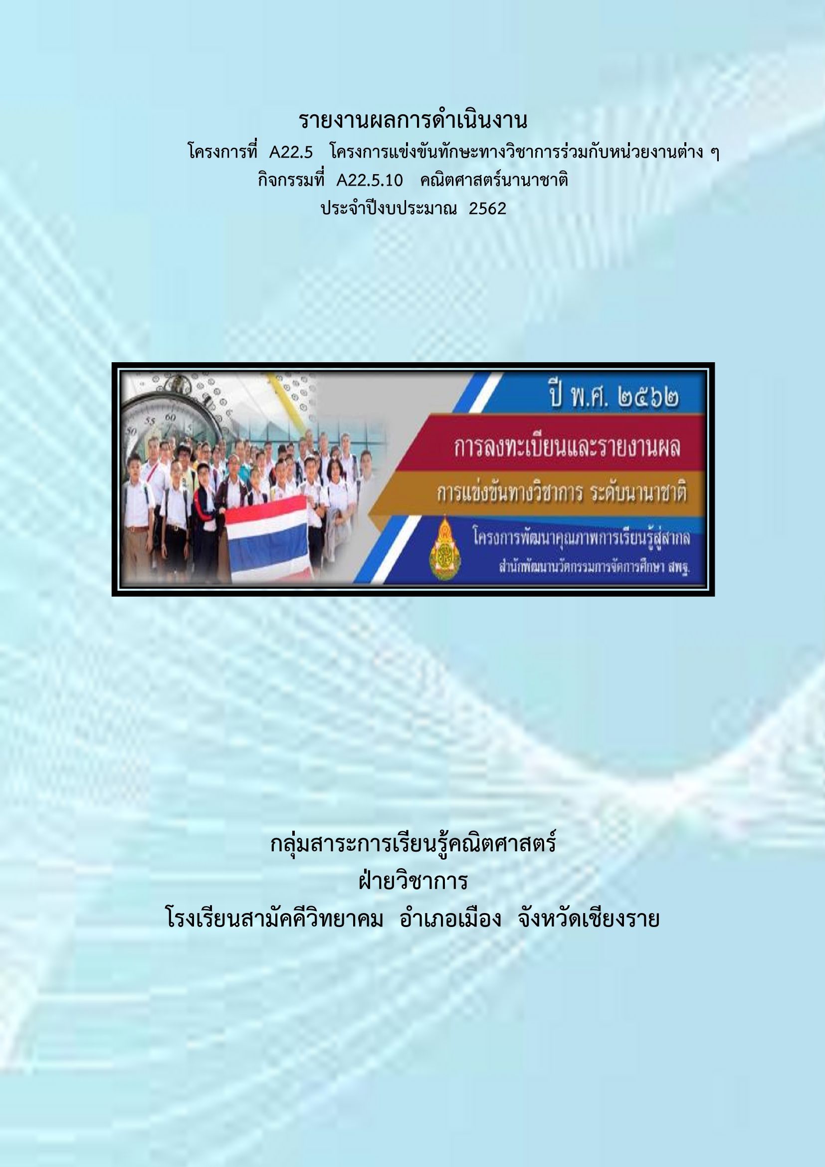 รายงานโครงการ กิจกรรมคณิตศาสตร์นานาชาติ ประจำปีงบประมาณ2562
