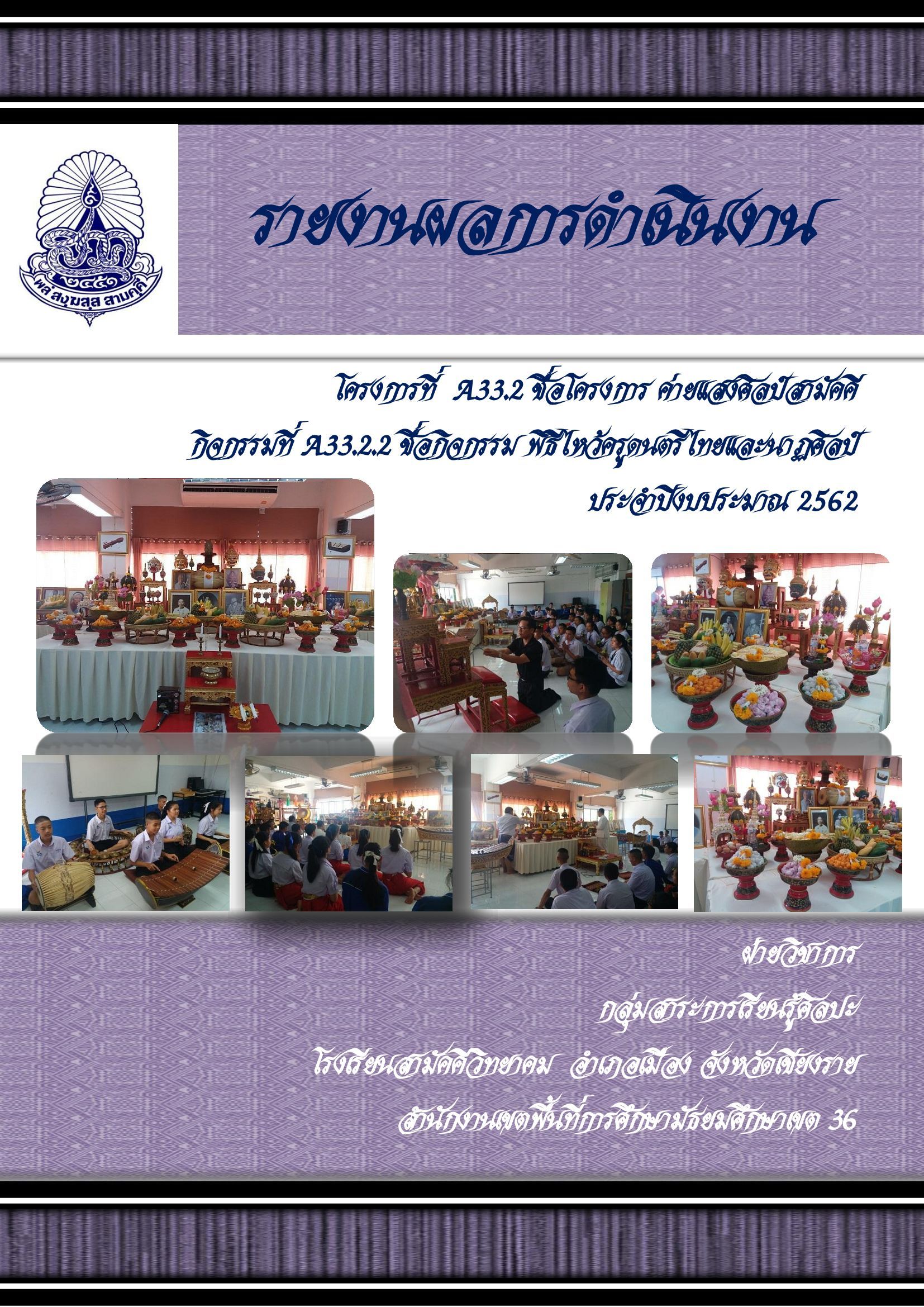 รายงานโครงการ กิจกรรมไหว้ครูดนตรีไทยและนาฏศิลป์ ประจำปีงบประมาณ 2562