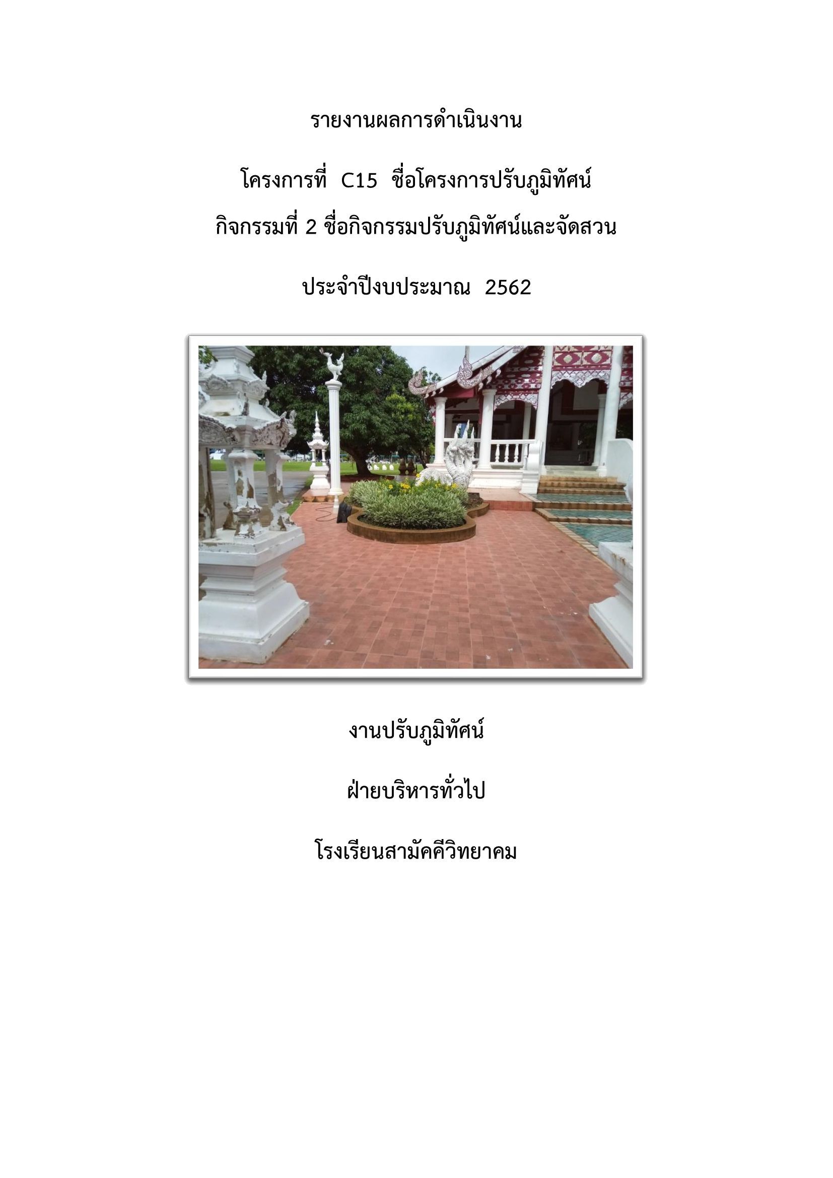รายงานโครงการ กิจกรรม ปรับภูมิทัศน์และจัดสวน ประจำปีงบประมาณ 2562