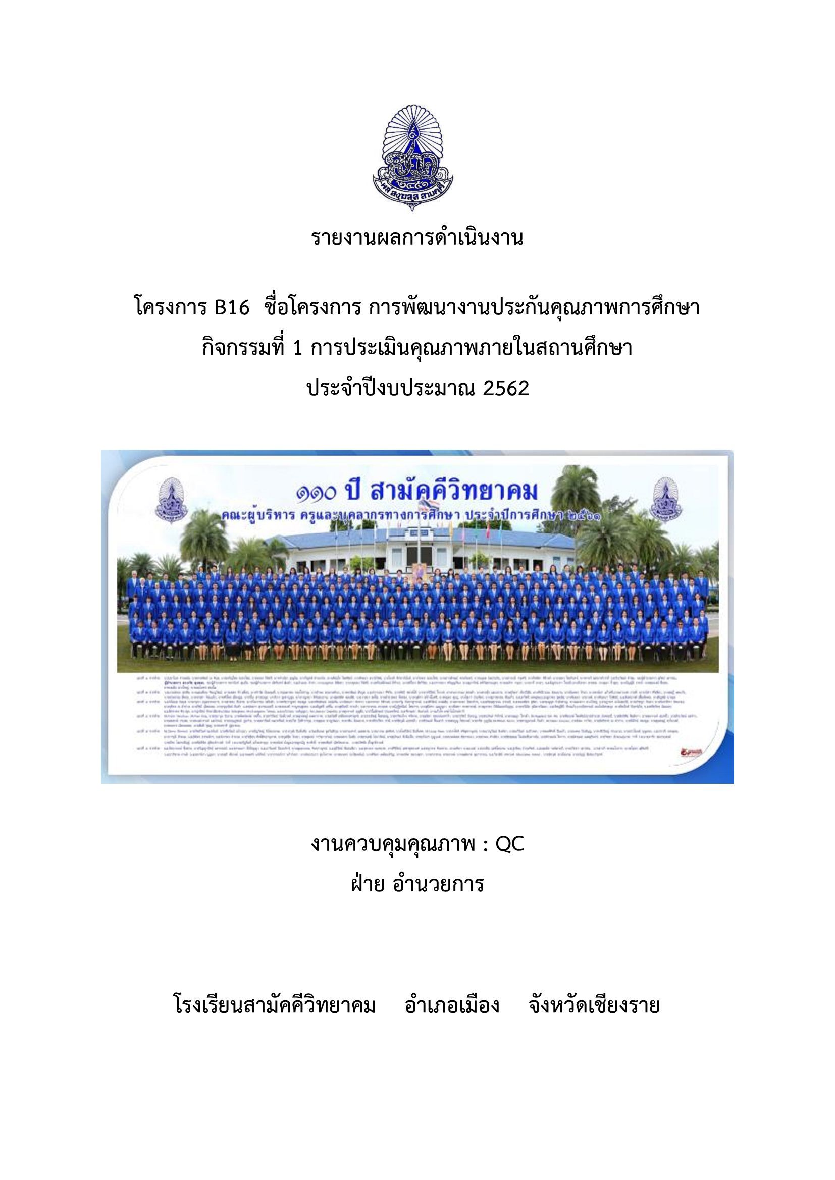 รายงานโครงการ กิจกรรม การประเมินคุณภาพภายในสถานศึกษา ประจำปีงบประมาณ 2562