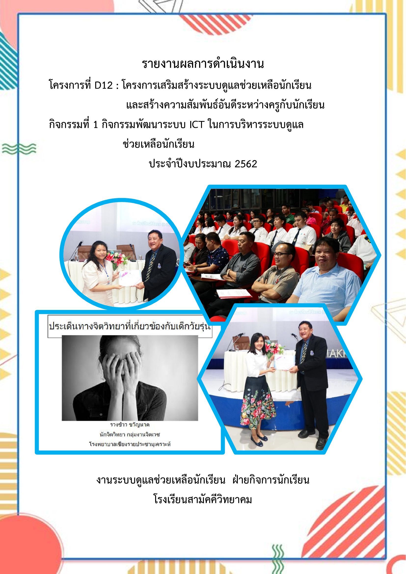 รายงานโครงการ กิจกรรมพัฒนาระบบICT ในการบริหารระบบดูแลช่วยเหลือนักเรียน ประจำปีงบประมาณ 2562