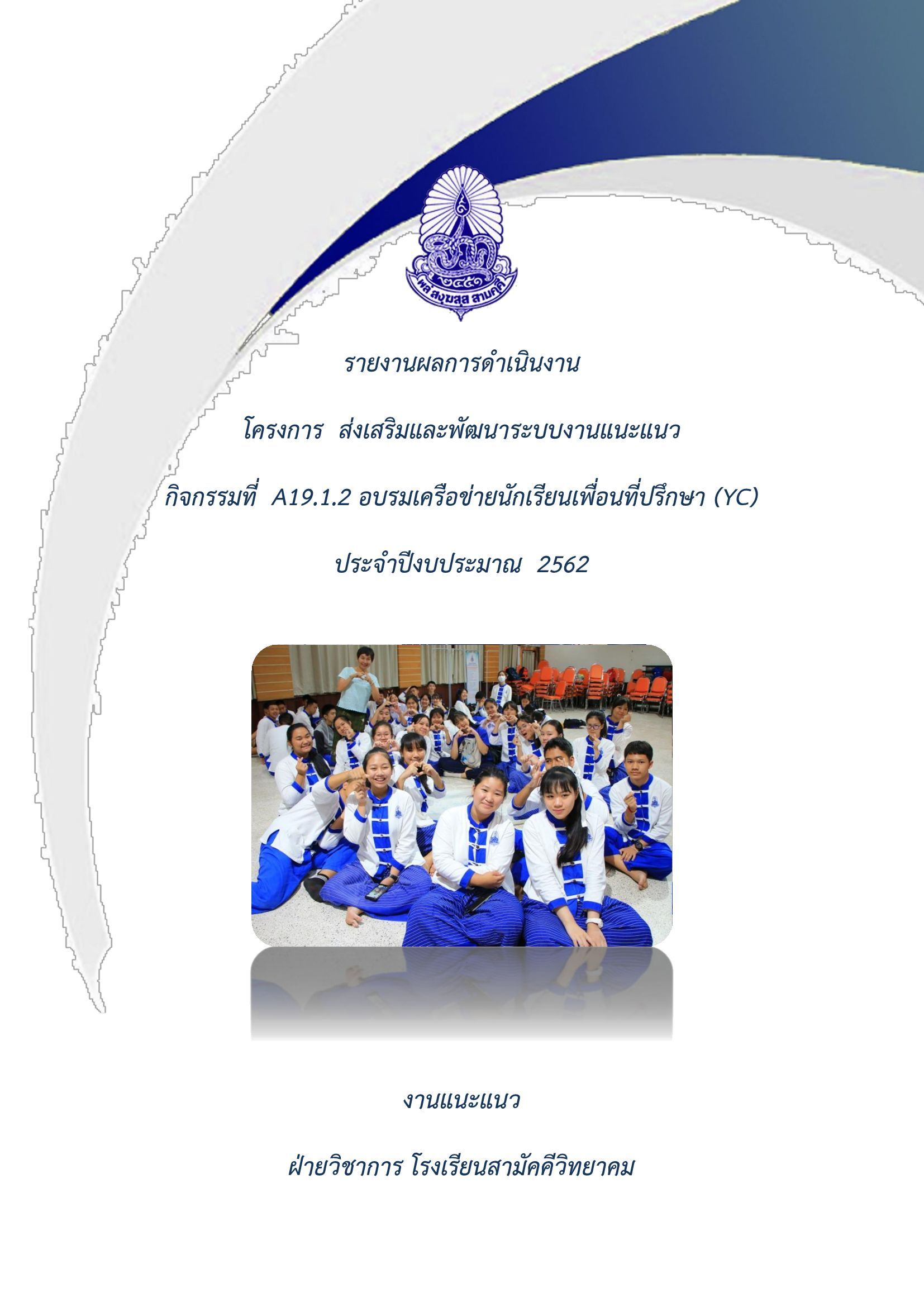 รายงานโครงการ กิจกรรมอบรมเครื่อข่ายนักเรียนเพื่อนที่ปรึกษา (yc) ประจำปีงบประมาณ2562