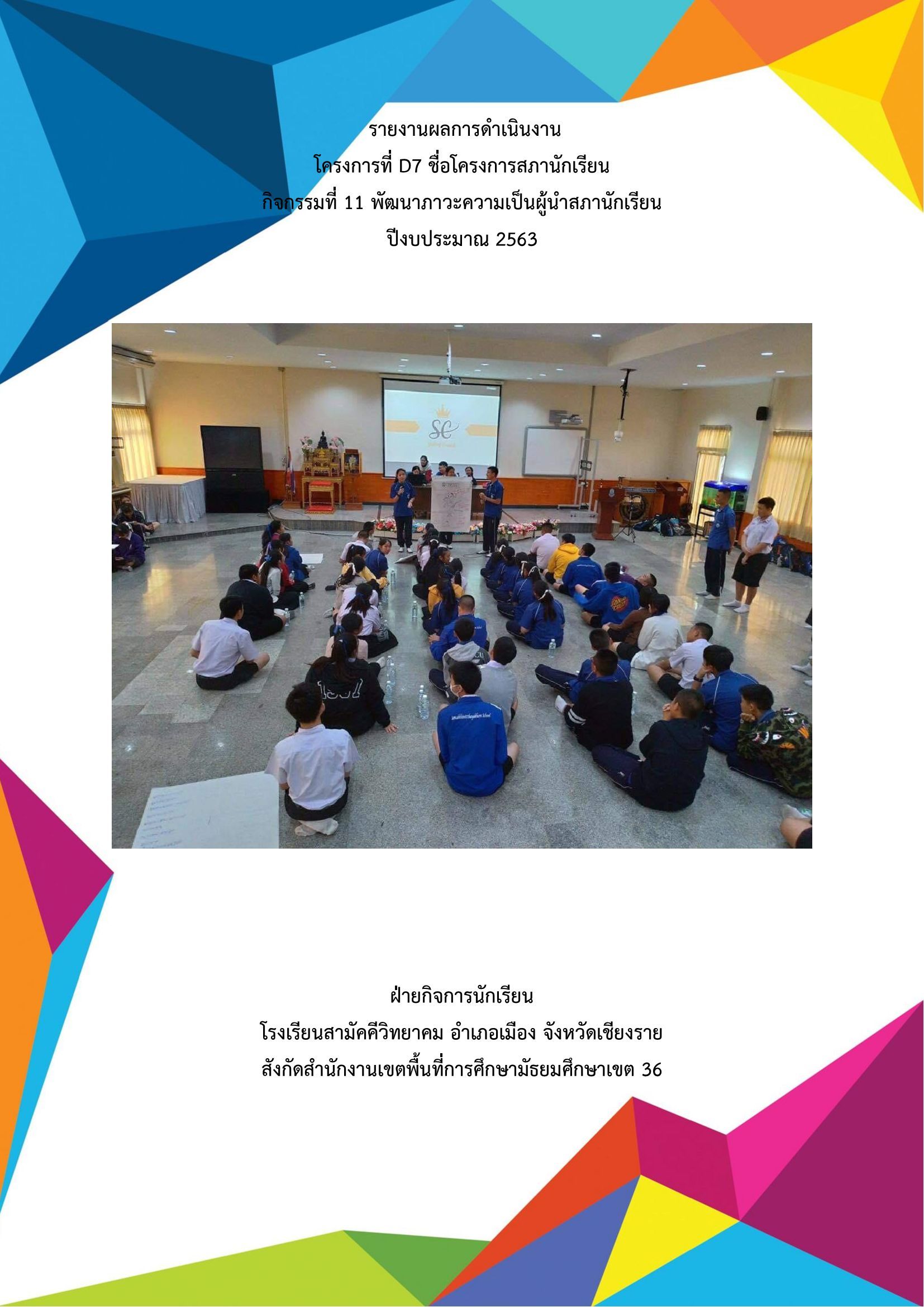 รายงานโครงการ กิจกรรมพัฒนาความเป็นผู้นำสภานักเรียน ประจำปีงบประมาณ 2563