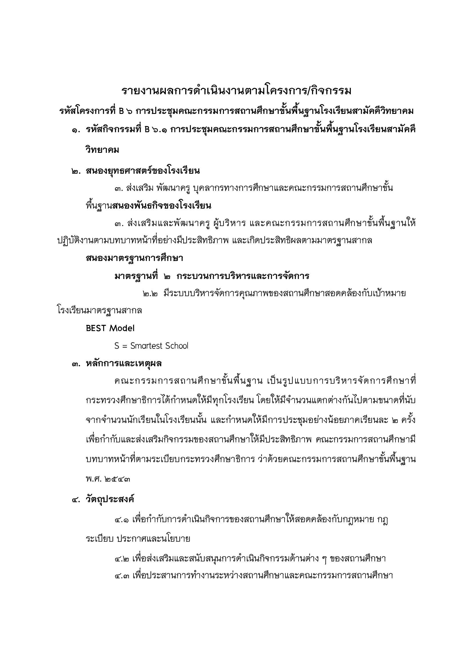 รายงานโครงการ กิจกรรมการประชุมคณะกรรมการสถานศึกษาขั้นพื้นฐาน โรงเรียนสามัคคีวิทยาคม ปีการศึกษา2563