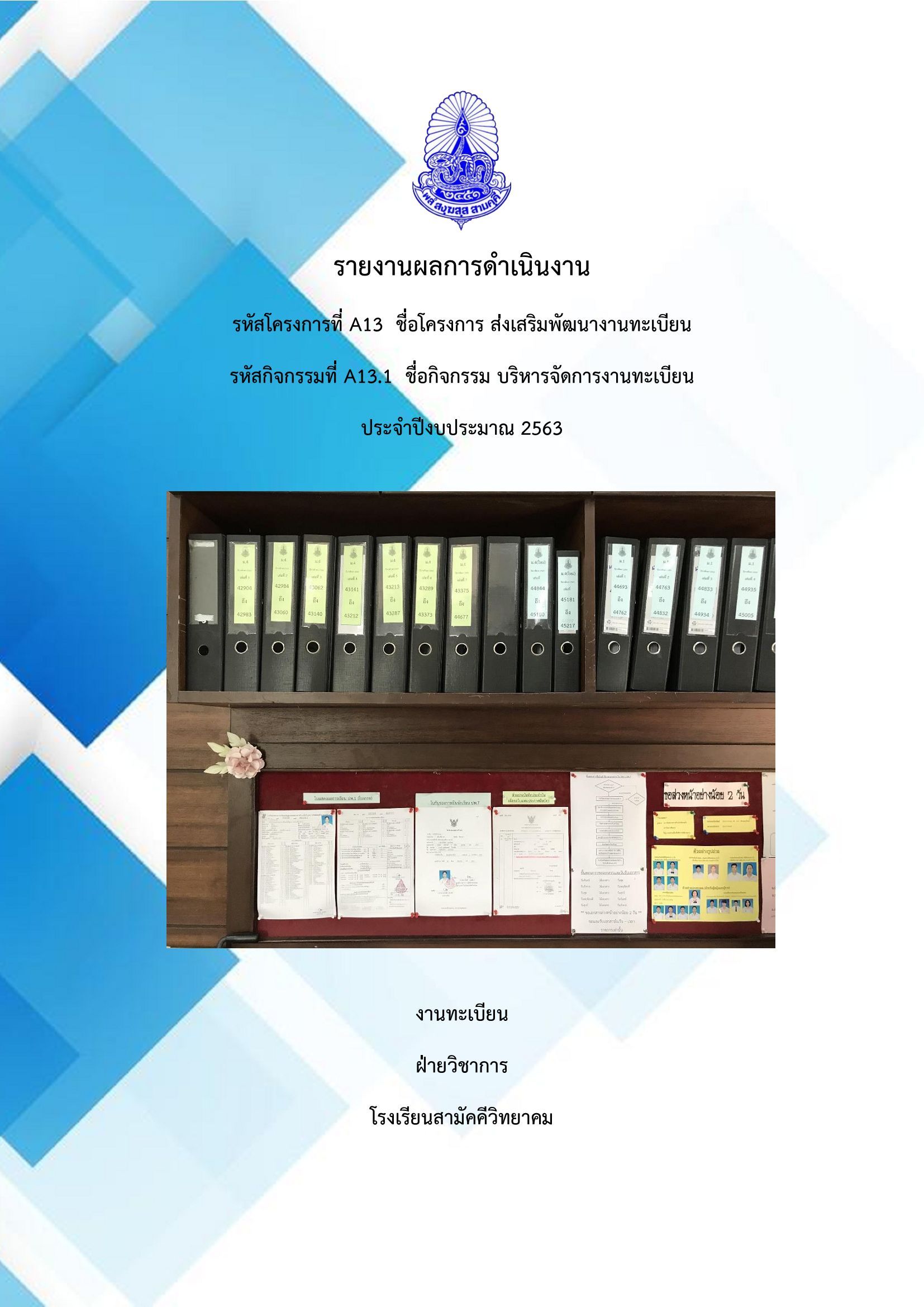 รายงานโครงการ กิจกรรมบริหารจัดการงานทะเบียน ประจำปีงบประมาณ 2563