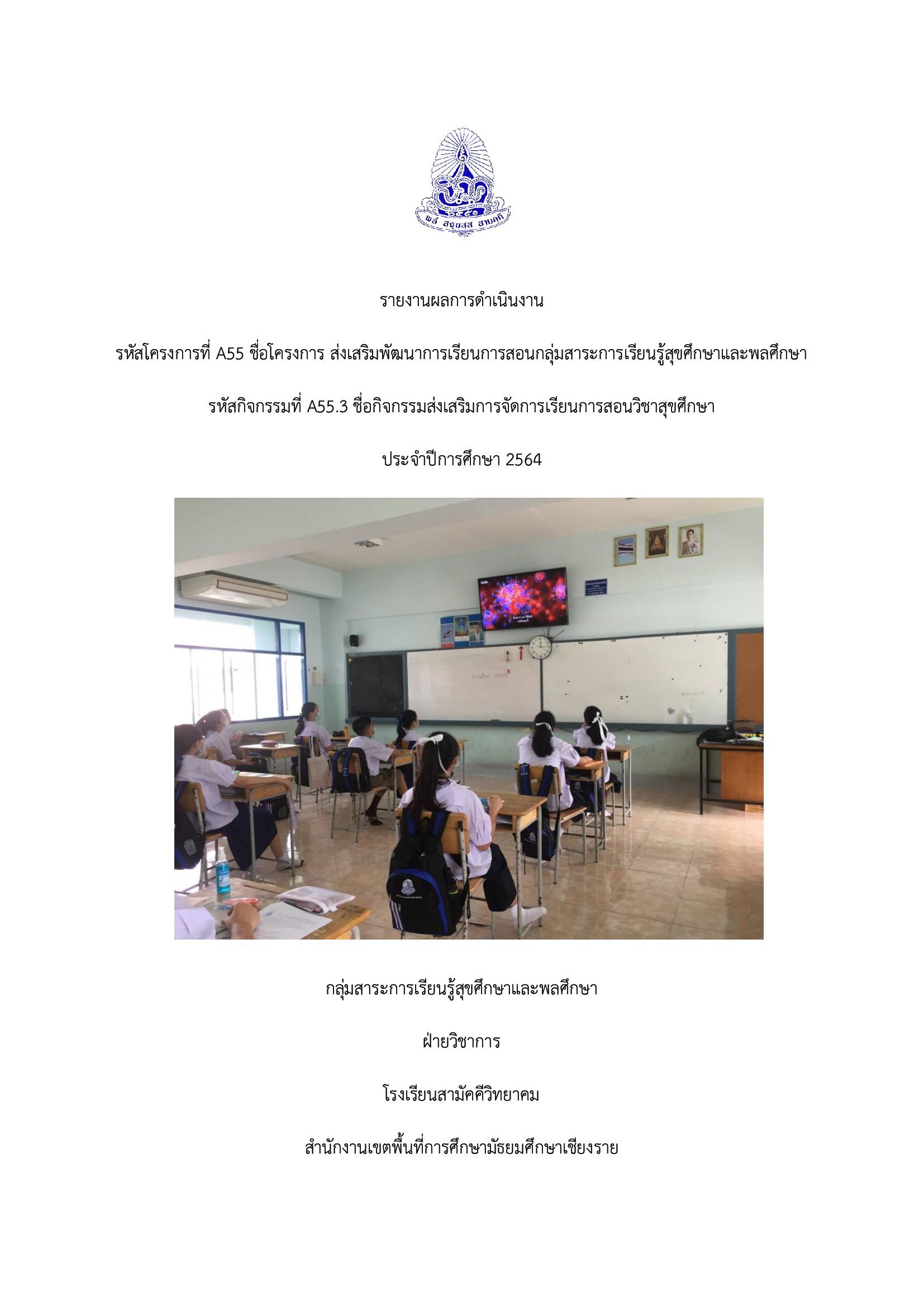 รายงานโครงการ กิจกรรมส่งเสริมการจัดการเรียนการสอนวิชาสุขศึกษา ประจำปีงบประมาณ 2564